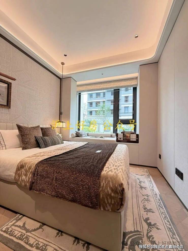 电视背景墙采用卡慕白的石材+皮革造型,弧形吊顶,相当讲究,连空调出风口的形状都打造为海上·清和玺logo山茶花的形状~~三大件为大金(或同等档次)中央空调和地暖,新风系统为百朗(或同等档次),南向阔景阳台,采光视野一级棒!
