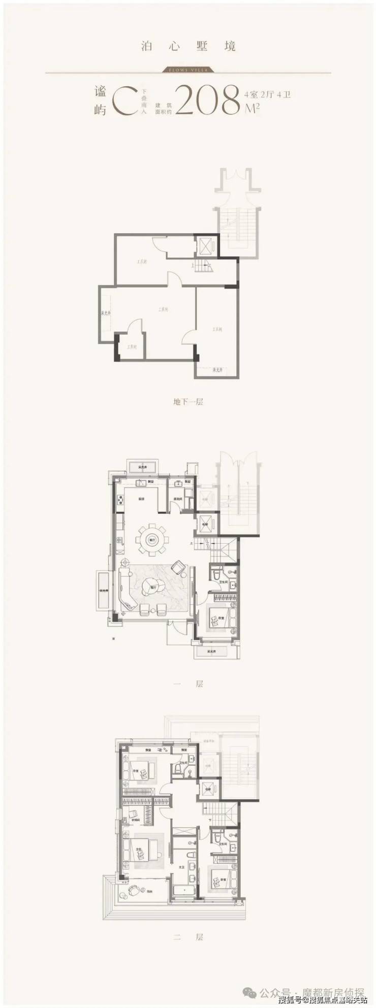一层会客区、一层居住区,精心规划的空间分层,构建出一条流畅且有仪式感的生活动线。