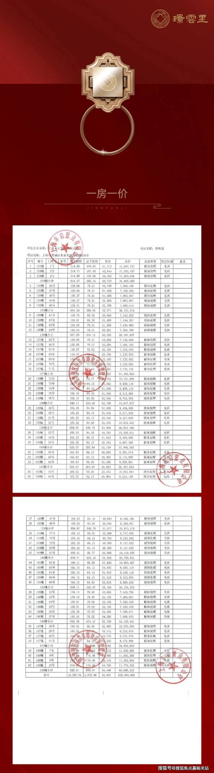 项目一房一价表▼