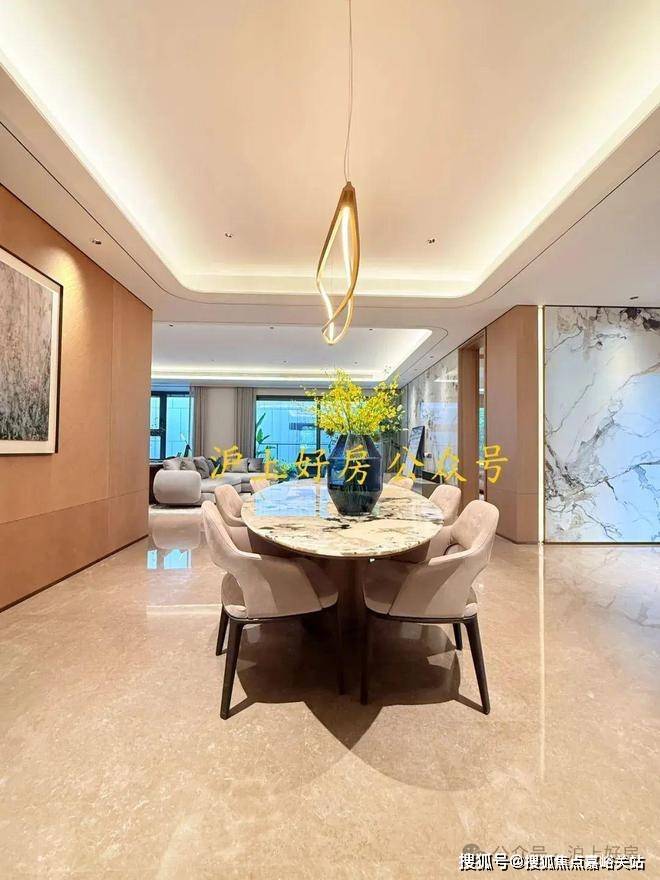 这个是入户玄关处的地面,☑️☑️缦云上海售楼处电话:400 - 8377 - 020☑️☑️大理石地面搭配金属线条勾勒出玄关地界,归家的氛围感从这个区域就开始了~这还不是重点,玄关座椅背后,是一面皮革包裹的墙面。鞋柜下方做了悬浮处理,同样也是内嵌灯带,这里灯光的角度还会再调整,因为灯光映射在大理石地面上,要显得尽量柔和不刺眼;☑️☑️缦云上海售楼处电话:400 - 8377 - 020☑️☑️同时,鞋柜下方可放拖鞋,还能放扫地机器人,便于日常清扫打理。鞋柜的饰面,纹路方向统一,呈现出极强的协调感。橱柜作为强功能性的收纳系统,自然少不了操作性能上的考究,吊柜做了升降式的拉篮,以后再也不用爬上高凳拿取了。下方的橱柜则做了转角拉篮,☑️☑️缦云上海售楼处电话:400 - 8377 - 020☑️☑️充分利用转角空间,使物品井然有序的同时,轻松方便取放。水槽也是一个大单槽,放得下炒锅汤锅这种大物件~抽拉式龙头,清洗大水槽的时候很方便,360度旋转伸展自如,这款弯管还是硅胶材质,柔软耐用有弹性,还可切换出水模式,出来的水柱也是很柔和细腻不飞溅。☑️☑️缦云上海售楼处电话:400 - 8377 - 020☑️☑️厨房玻璃门是上轨道移门,意味着地面部分没有任何轨道,不会有灰尘积攒,炒菜时关上,避免油烟散入室内;平时拉开,可以扩充室内视觉感受。卫浴缦云上海所有户型的所有卫生间里都用了悬浮式的洁具和柜体,确保了下方空间的打扫无死角,☑️☑️缦云上海售楼处电话:400 - 8377 - 020☑️☑️对未来的入住带来非常大的便利性!吉博力同层排水技术,静音是最大亮点;特制“水母”地漏,多重防臭防反溢。干净舒适的卫生间,是从空气到水流的全面把控~你们可以看下缦云上海是如何处理卫生间木门的防潮的——卫生间一侧用大理石做踢脚线,☑️☑️缦云上海售楼处电话:400 - 8377 - 020☑️☑️这是真正细致入微的巧思!主卧卫生间配备的电热毛巾架简直就是遇到潮冷节气的“福音”,让毛巾、内衣都能够提前加热干燥。层高对于缦云上海的纯大宅社区定位,能买这样产品的购房者会非常在意空间感。☑️☑️缦云上海售楼处电话:400 - 8377 - 020☑️☑️缦云上海全部户型层高约3.3米,室内所有空间的门都做了通顶设计,更阔绰的居室空间,将生活格局有效放大,通风、采光和观景体验的全方位提升!弧形元素缦云上海样板间里随处可见柔和的圆弧修饰,特别是柜体、墙体包边的圆弧转角,在进出各个空间时,减少磕碰的风险,☑️☑️缦云上海售楼处电话:400 - 8377 - 020☑️☑️对于有孩子和老人的家庭来说,是非常实用的友好设计。而且,门套做了弧形设计后,还叠加了金属线与墙纸做了分割,加强隔断界限感,提升室内家居精致度~比起中规中矩的直线,弧形施工工艺更复杂、造价更高,却多了几分灵动轻盈!☑️☑️缦云上海售楼处电话:400 - 8377 - 020☑️☑️这种弧形的元素不只是在样板间里,在售楼处也能经常看到,比如电梯厅。