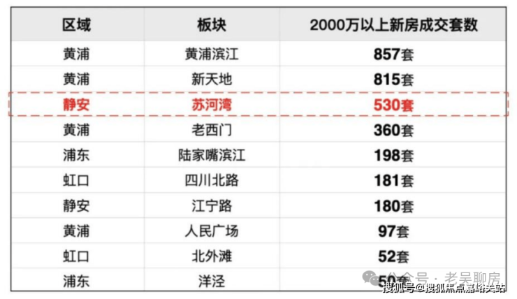 第一:去年约2000万以上的新房成交套数,苏河湾是全市第三, 仅次于黄浦滨江和新天地。