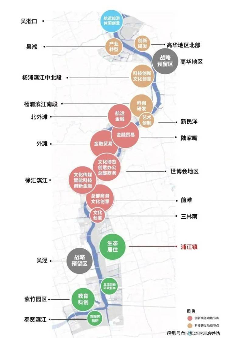 因为从空间布局也能看到,黄浦滨江沿岸从北至南功能定位早已明晰。只有浦江镇专注于生态居住,再叠加不可复制的滨江资源。