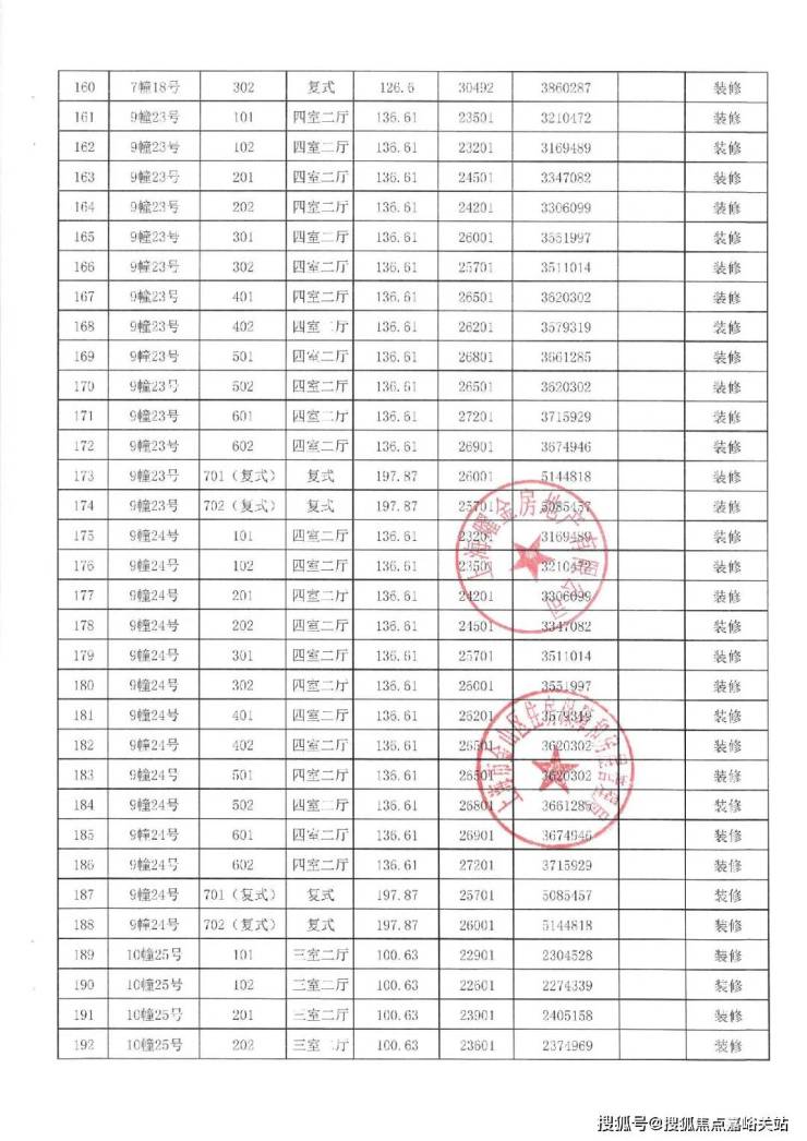 项目一房一价表