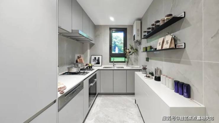 第五个亮点, 宽阔的L型厨房,两面靠墙,灶台和水槽布置空间充足,实际使用能够满足各类烹饪需求。