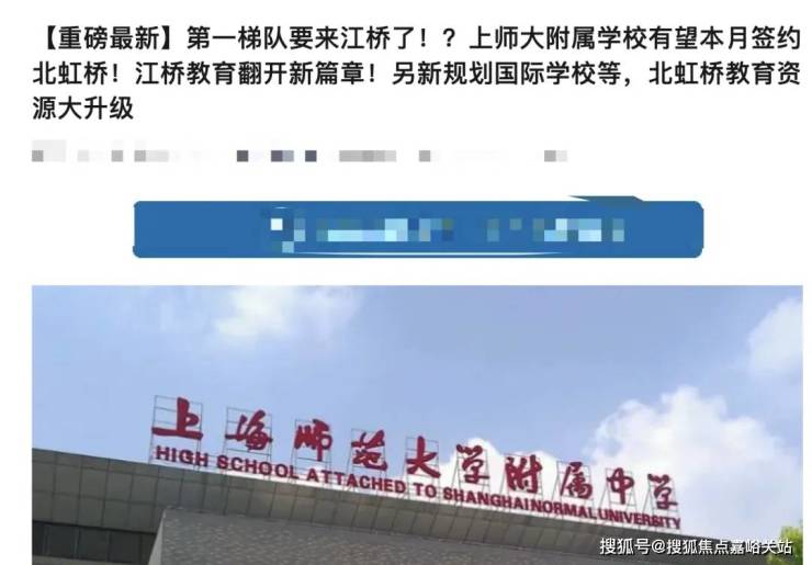 近日,嘉定江桥传出一个令人振奋的消息,上海第一梯队的 上师大附属学校或将于本月与嘉定区和江桥相关部门正式签约, 入驻江桥北虹桥地区,即上虹桥北虹之星。(具体情况等官方消息)