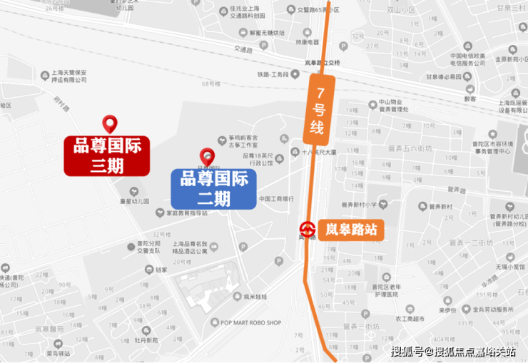 【品尊国际】位于7号线岚皋路站旁,从7号线岚皋路站出口出来,较远的楼栋与地铁站相距也不过300米,轨交出行非常方便。