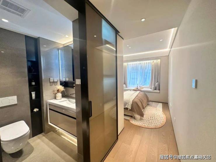 主卧套房设计,卫浴、衣帽间、主卧层层递进,卫浴还是全明设计,既有空间的尺度感,又有生活的舒适性。