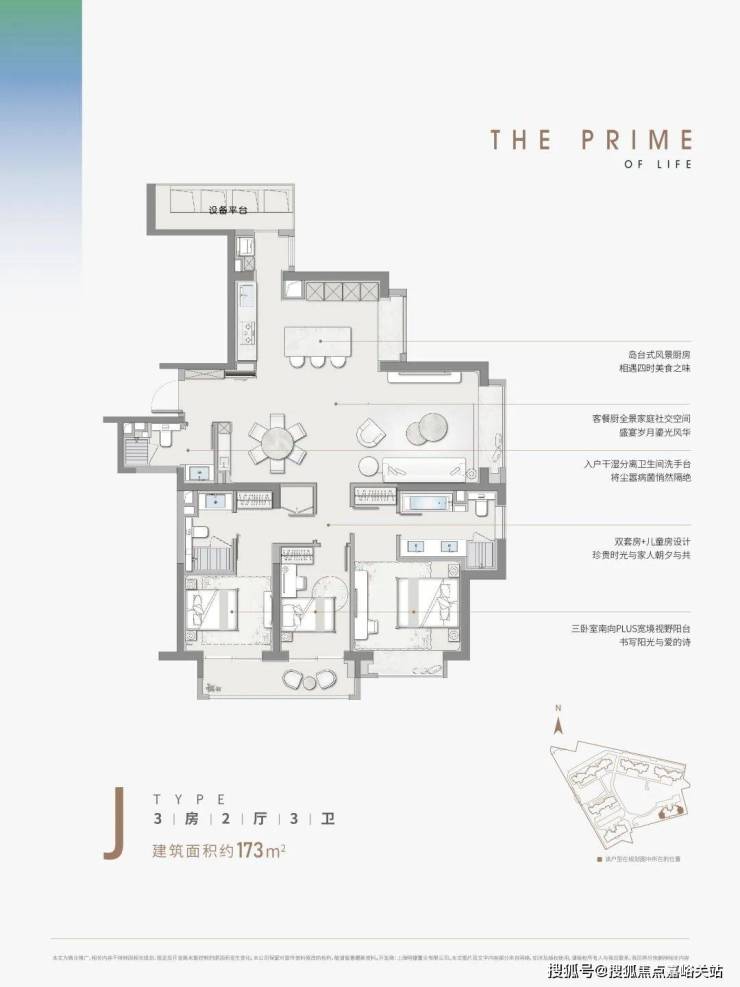 建面约173㎡3房,整室动静分离,吧台、餐厅、客厅形成了一个一体化的公共空间,属于太太们的下午茶时间,或者是孩子们的聚会,都能安排下。品尊国际售楼处电话为:400-8824-198 (24小时预约快线)