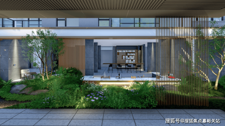 约7000㎡中轴景观,涵盖约3500㎡多功能中央草坪和约200米景观长廊 ,日常簇拥花间草木,让建筑与绿意和谐生长。