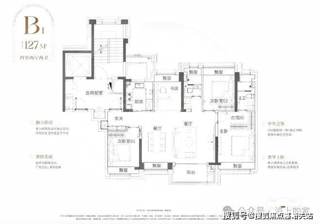 比起市面上普遍的三开间朝南动静分区户型,该户型至少有3大爆点: