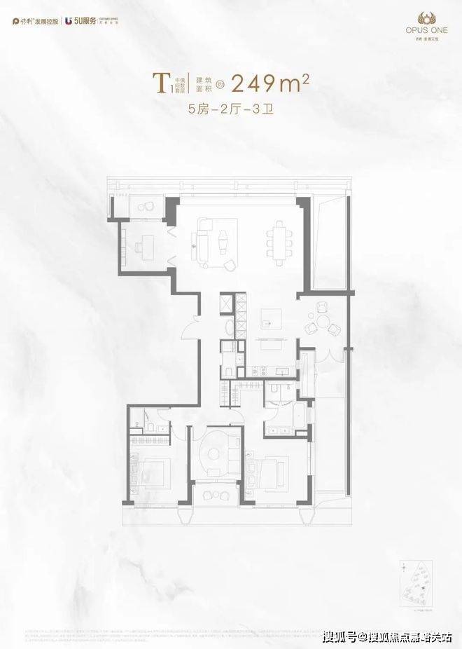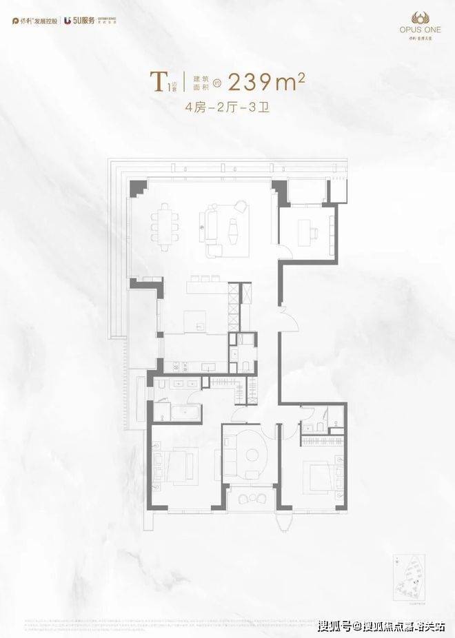 建面约174㎡在做到极致观景面的同时, 主卧面宽高达约5.7米,媲美别墅居住体验。