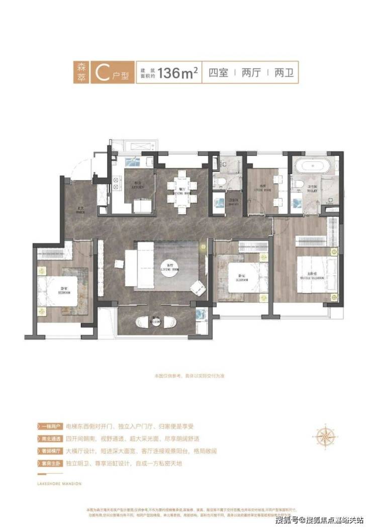 约90㎡三房两厅两卫 约100㎡三房两厅两卫 约136㎡四房两厅两卫