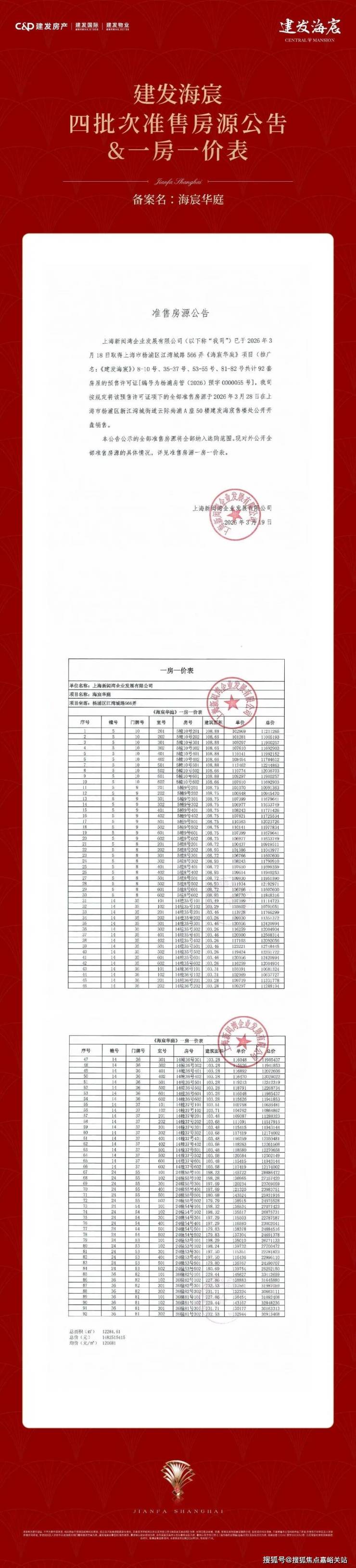 《楼市独家》最新消息: 建发海宸四批次已取证,今日(3月20日)认购盛启!推出建面约103-233㎡洋房&叠加,均价120681元/㎡!
