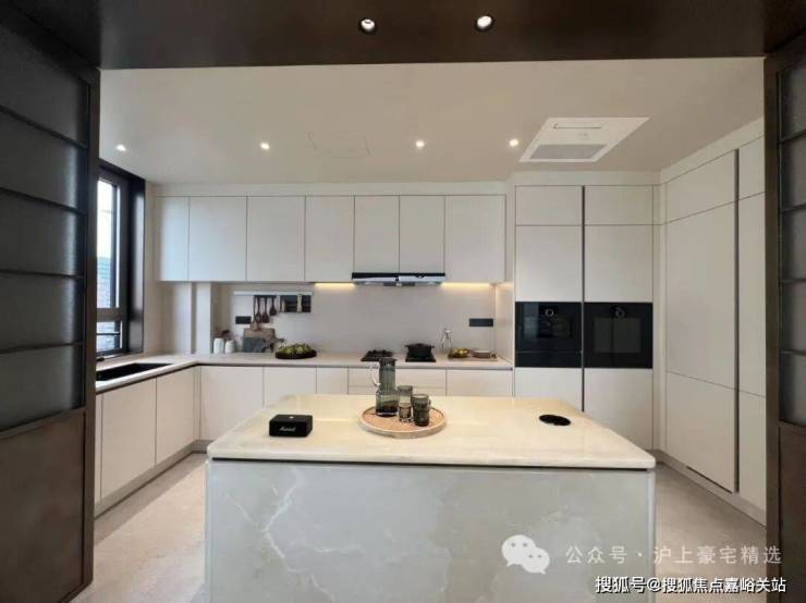 U型厨房设计,空间更加宽敞实用,再加上岛台,进一步拓展了操作台面,提升了厨房的使用功能;