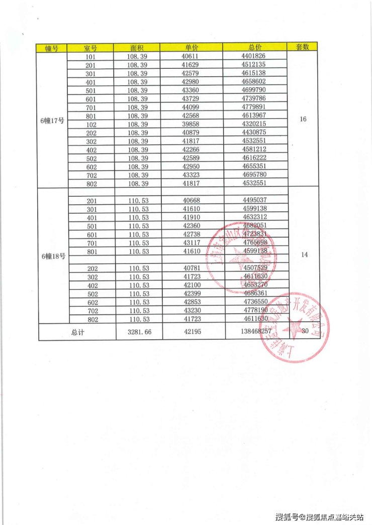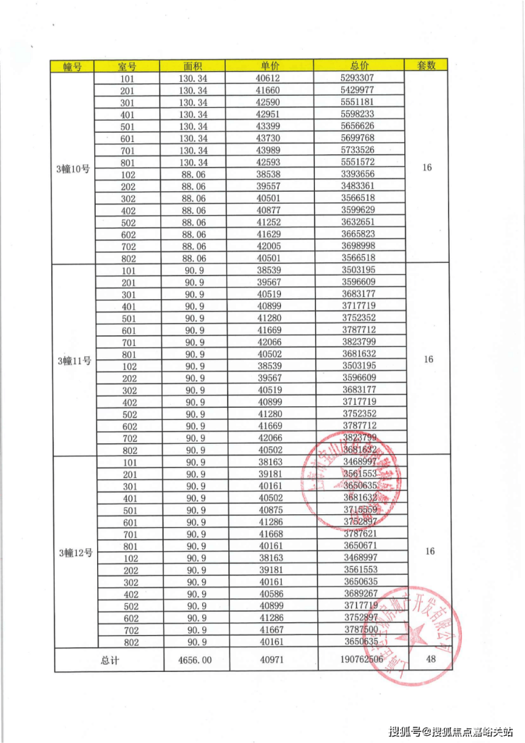 上期一房一价表: