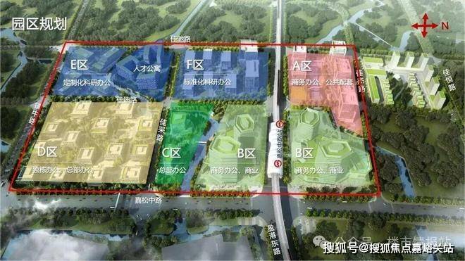 市西软件园核心位置就在嘉松中路站两侧,这里正打造 漕河泾赵巷科技绿洲,一共六个地块