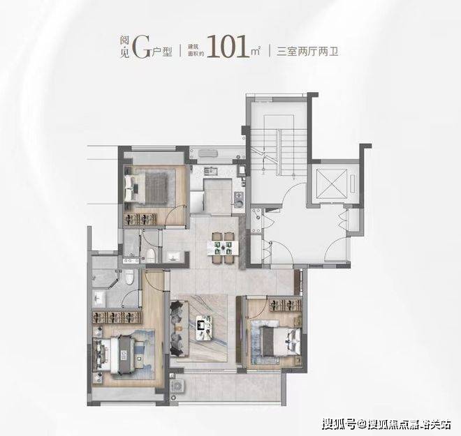 建面约101㎡的F和G户型都是市面上备受认可的飞机经典款户型。