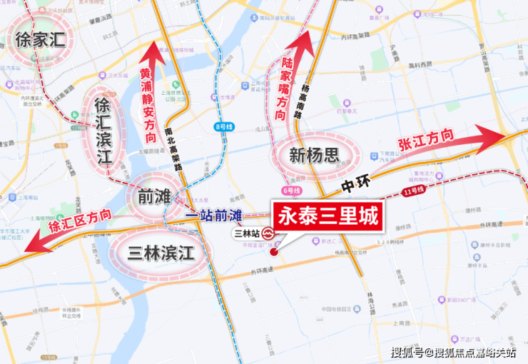 事实上,三林滨江在空间上与前滩更为贴近,但永泰三里城在时间距离上更占优势。