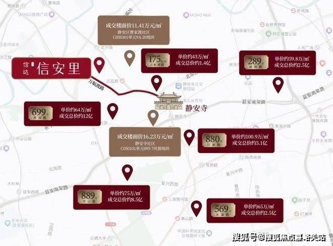 巨鹿路880号,上海【信达·信安里】售楼处电话:400-8824-258【营销中心】中介勿扰成交单价约100.9万/㎡;万航渡路175弄·静园壹号,成交单价约43万/㎡;愚园路699号·严家花园,上海【信达·信安里】售楼处电话:400-8824-258【营销中心】中介勿扰成交单价约64万/㎡;华山路889号,成交单价约75万/㎡。