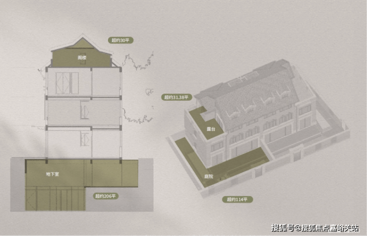 纯双拼风貌别墅(地上 3 层 + 地下 2 层 + 庭院 + 露台)