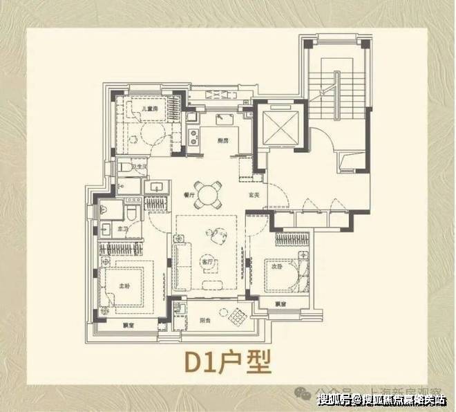 建面102平米的另一户型为市场上认可度比较高的飞机户型,空间紧凑,不浪费面积,使用率高。