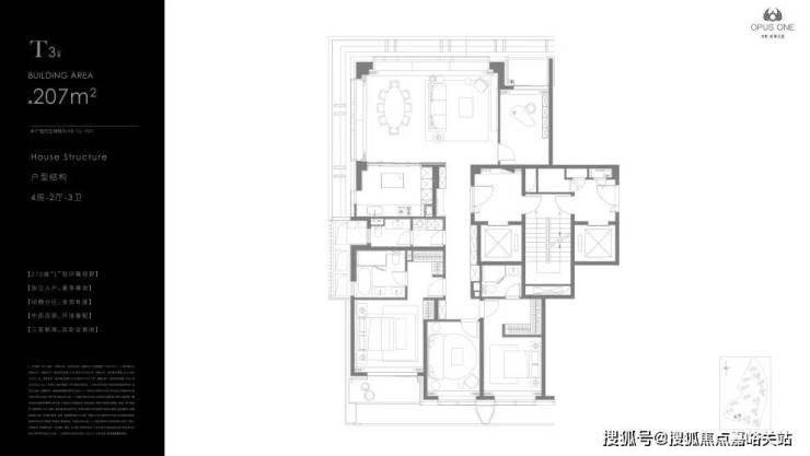 ⑤ OPUS ONE 500空中行宫:4+1房&双豪华套房规制、2梯1户超大专属电梯厅、超大宴会厅、5个阳台、独立内玄关、阳台、起居厅、步入式衣帽间、双台盆浴缸卫生间、灵活X空间;