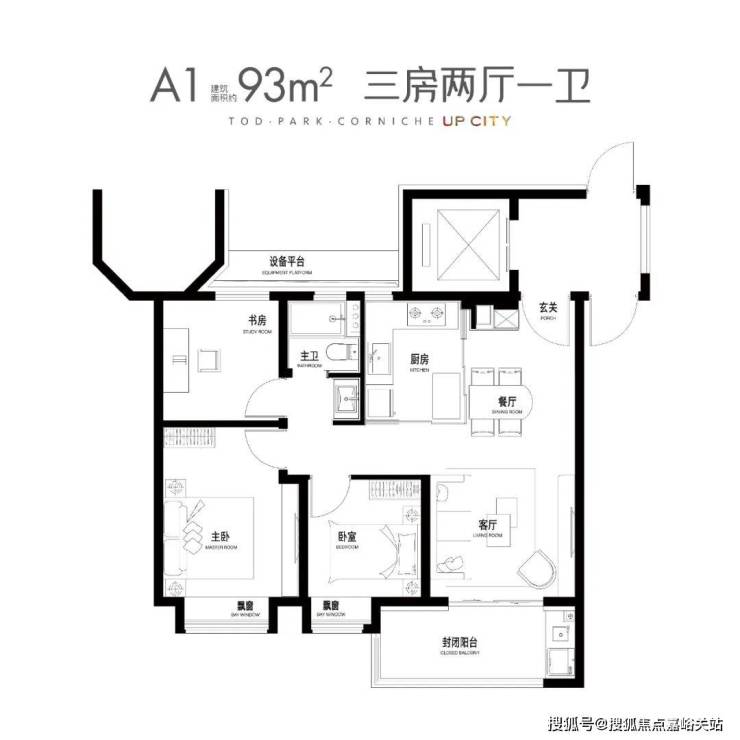 建面约93㎡3房2厅1卫▼