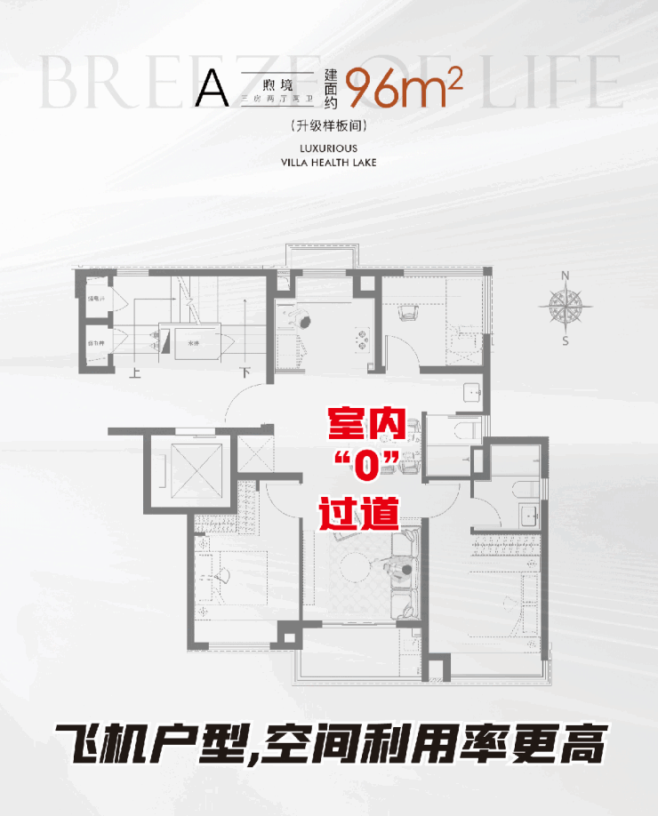 不得不说,这个建面约96㎡3房2厅2卫户型,能满足业主从二人世界到三口之家,再到二胎家庭的全生命周期需求。