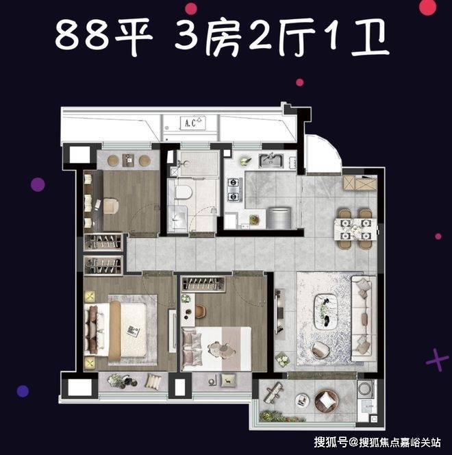 建面约88㎡的3房2厅1卫,位于楼栋的中间套,三开间朝+动静分离格局,通过全屋飘窗拓展实用面积,更适合小家庭客户升级居住环境。☑️☑️深嘉上府售楼处电话:400 - 8377 - 020☑️☑️