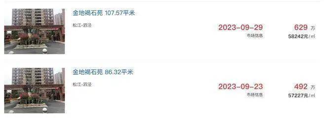 其他次新小区,比如泗泾大盘金地玺悦,二手房成交价也都在6.3-6.9万/㎡之间。
