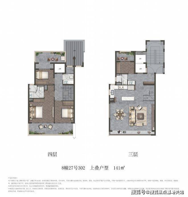 项目叠墅包含建面约141㎡上叠和建面约150㎡下叠.