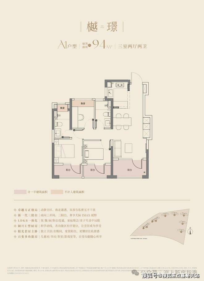 建面约94㎡三房:460万起的“黄金入场券”