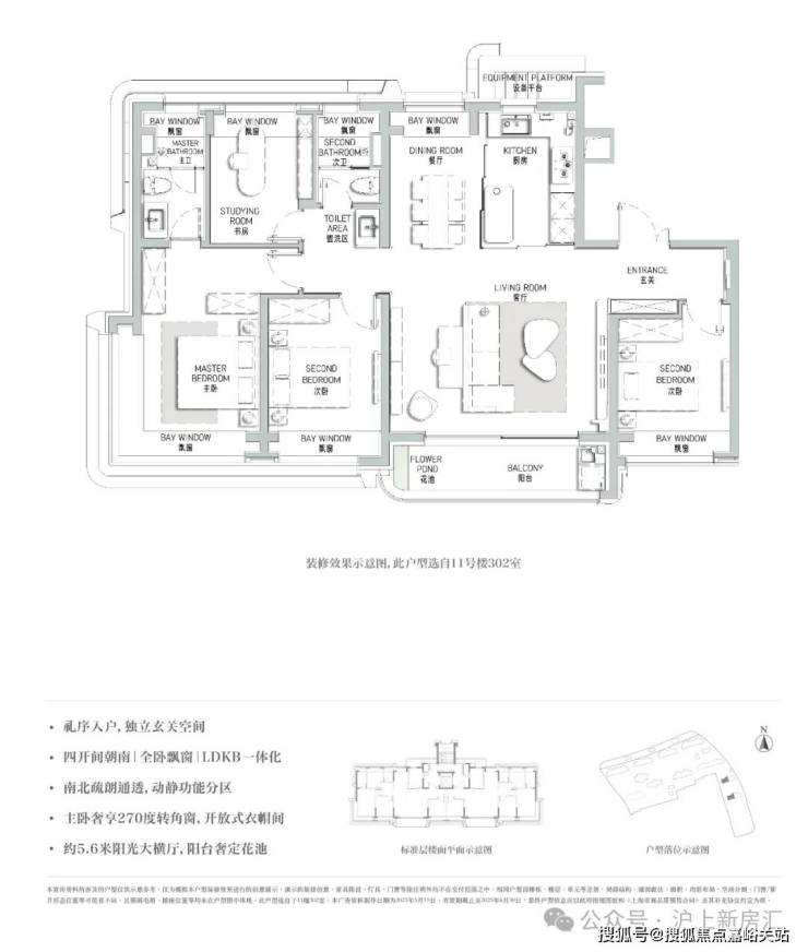 3、南向四开间,面宽约15.5m,独立餐客厅,南北通透