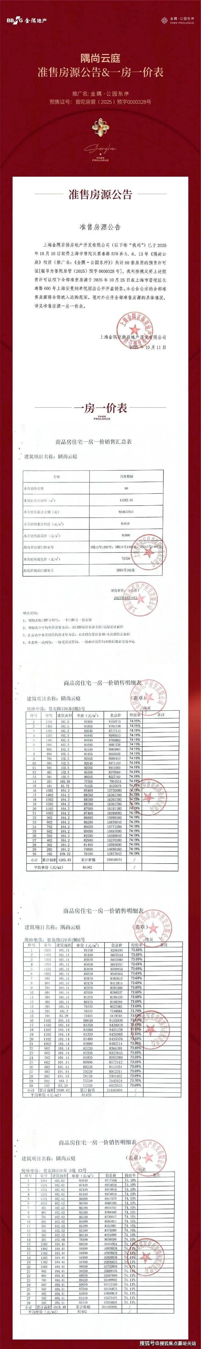 金隅·公园东序一房一价表: