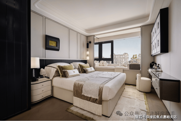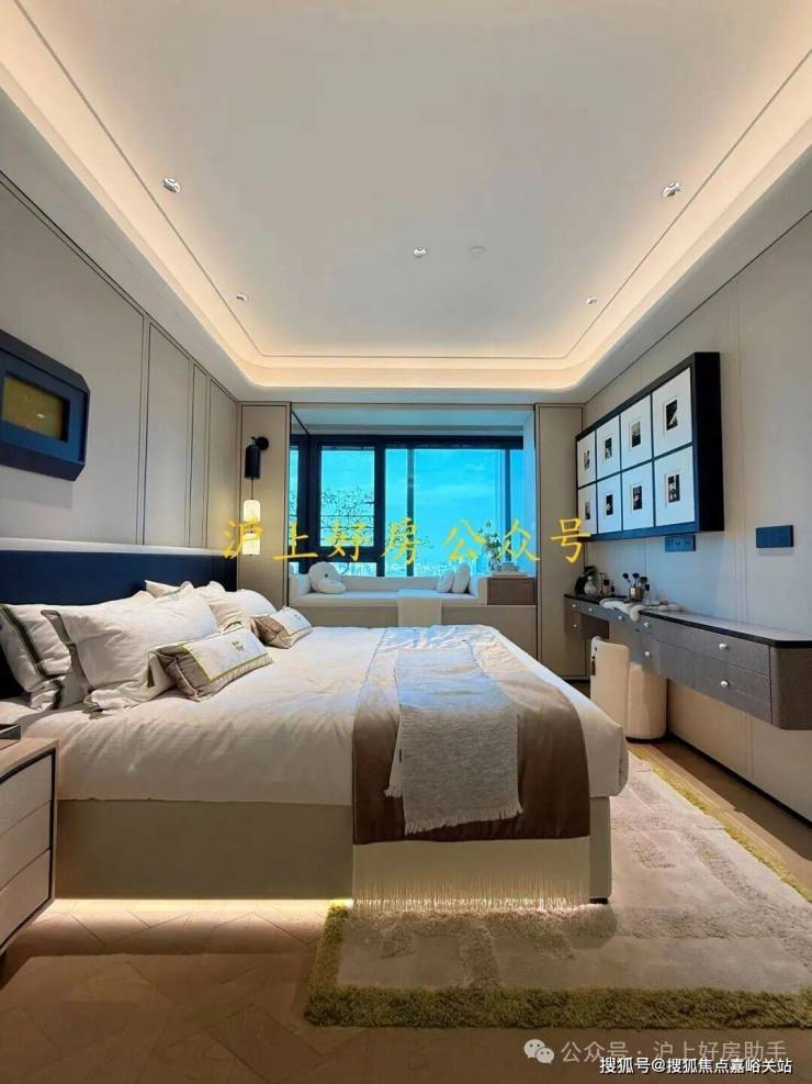 尺度 MVP :约 9米的宽幕贯通厅连接着超大的阳台,外滩天幕的繁华景色在这里成为日常;南向次卧为孩子的成长预留了足够的想象空间;北向房间面宽约 3.1米、进深约 4.15米(含 约60cm 宽景转角飘窗)的空间,彻底跳脱 “次卧即局促” 的刻板印象。无论是作为长辈房,还是书房,都能享受到与主卧同质的舒适 。