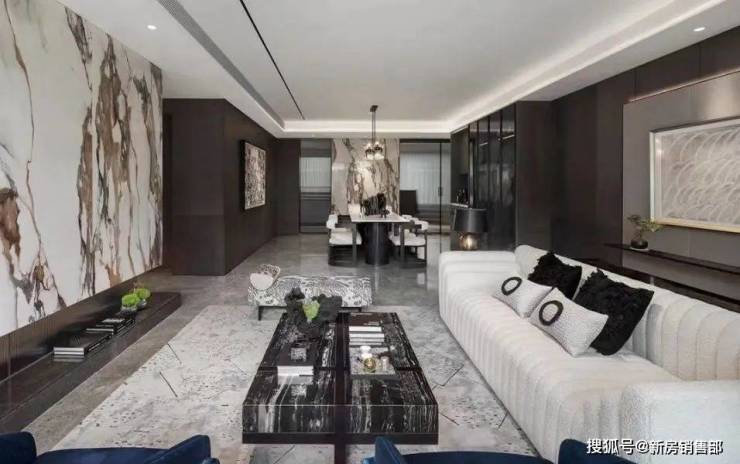精奢静雅的当代质感 :以同步国际的质感、美学为基底,兼顾品质的精研、材质的臻选以及细节的演绎,同时于归家动线上打造了度假酒店般的落客空间,让归家充满仪式感和雅奢美学时尚呈现。