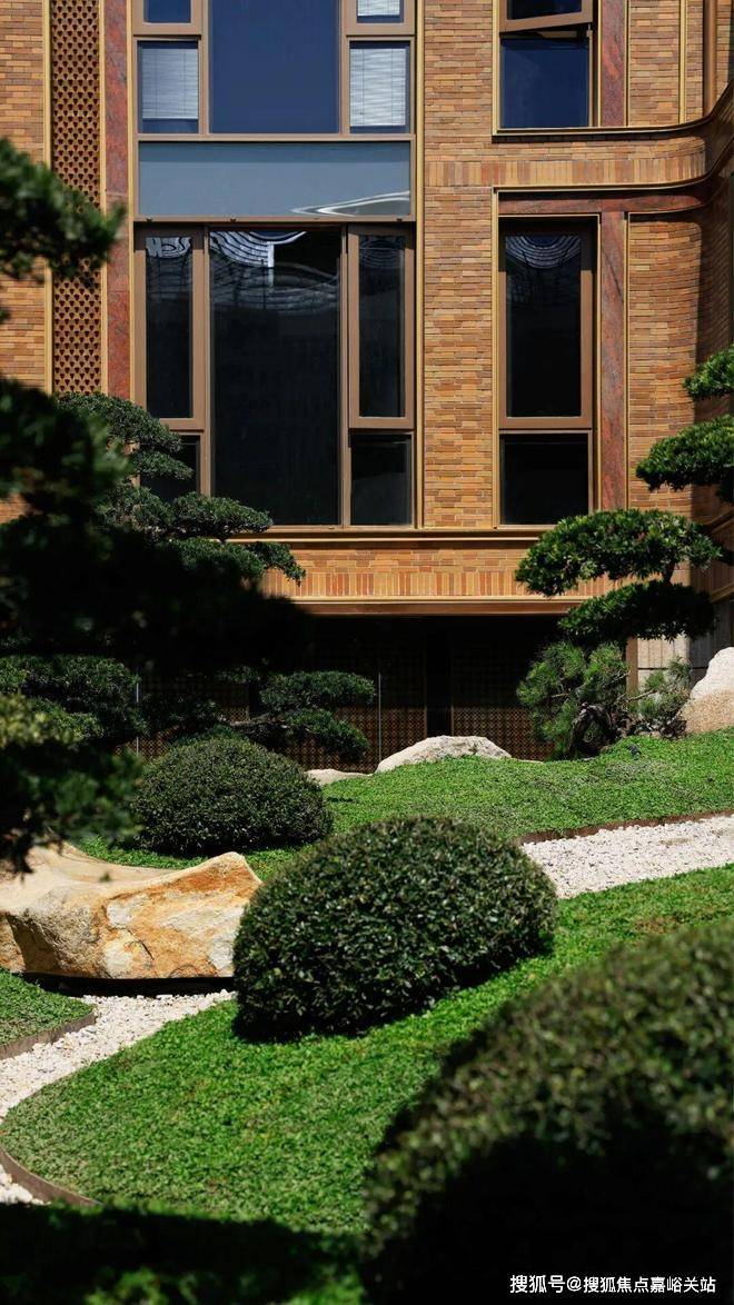 例如,在社区入户,目前已经完美呈现出来的,有强烈视觉冲击的立面大量的红砖、红洞石及大面积的落地弧形玻璃搭配的相得益彰,整个门头既有厚重的历史感,又不失极简主义的现代美。