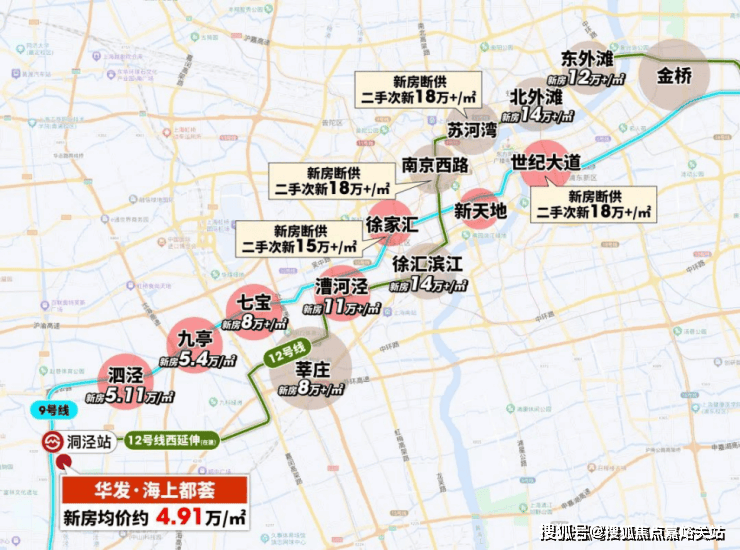 12号线,莘庄的新房价格8万/㎡,再往前的徐汇滨江、南京西路等市中心的价格已是高不可攀。