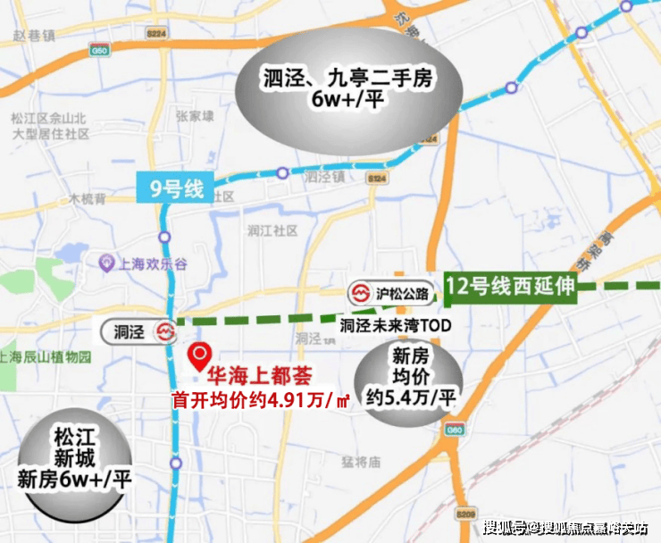 松江新城新房6万+/㎡,泗泾&九亭作为区域内承接市区的重要板块,好一点的二手房都上了6万+/㎡,居高不下。