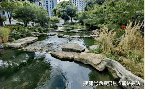 项目社区采用五重景观层层叠进,真石假山造景,承延墅区臻贵肌理的雅趣园林,引入自然河流,打造三面环水的滨水谧境,无界相融生态绿境,将社区、建筑、河流串联的相映成趣,自然围合,移步景异,营造极具魅力的惬意日常。