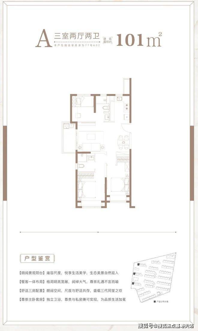 这是一个相对主流户型,受众面大,三口、四口之家居住都非常适合,未来流入二手房市场,也能收获下家更多青睐。