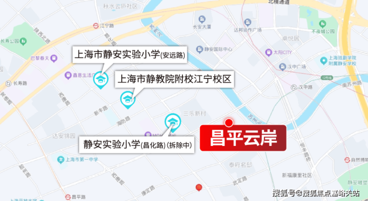 昌平云岸所处片区有3所公办小区,1所静安实验小学(昌化路校区)拆除中,1所静教院附校江宁校区,1所静安实验小学(安远路校区)。按2025年学区划分,片区内二手房基本都是2选1。