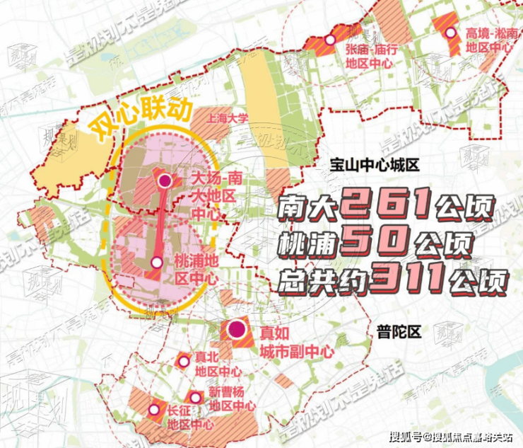 而南大与桃浦两大地区中心的“双心联动”,使得它们总共拥有约311万平方米的公园绿地,成为上海中环上最大的楔形绿地。