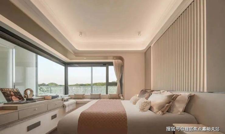 如果是 边套的主卧,还会有一个约270°的转角飘窗 ,尺度感和实用性更上一层楼。