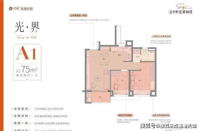 A1户型【建筑面积约74m² 两房两厅一卫】