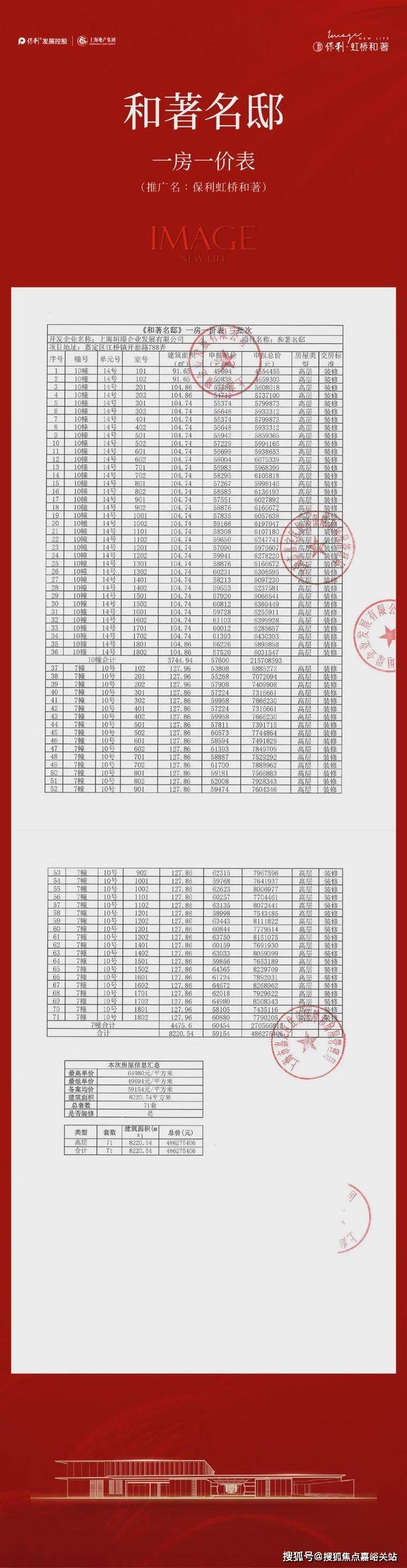 一房一价表: