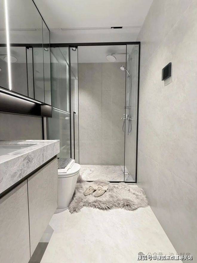 主卫智能一体马桶、顶喷花洒等配置齐全,玄关柜整体交付,诠释有温度的精致人居,更多细节就留待各位现场发掘。
