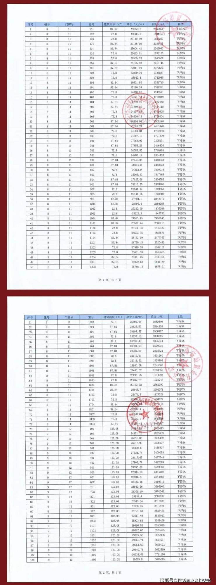 项目一房一价表