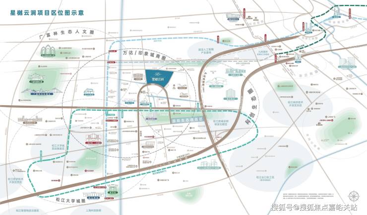 沪松公路南至松江老城G60 沪昆高速出口,北至七宝地铁站,贯穿松江老城、松江 新城、九亭、七宝,可覆盖西南全线生活功能区。