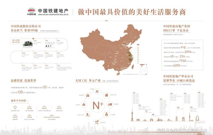 中国铁建股份有限公司:2022年《财富》“世界500强企业”排名第39位、“中国企业500强”排名第11位。中国铁建房地产集团有限公司,2019年销售额突破千亿,全球布局45个城市、234个项目,现有项目总建面约7700万平方米,已开发面积约6200万平方米;中铁房地产集团华东有限公司,深耕江浙沪10城51盘,以品质精工构筑隽永美好生活。 2022年战略布局上海,择址7000年文脉腹地松江,于松江新城核芯,为精英圈层打造未见的高知国际住区。